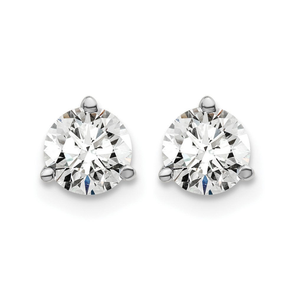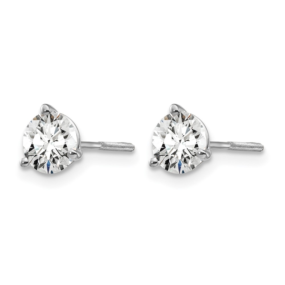 14k White Gold 1 carat Lab Grown Diamond VS+ F+ Round Complete Three Prong Screwback Stud Earrings