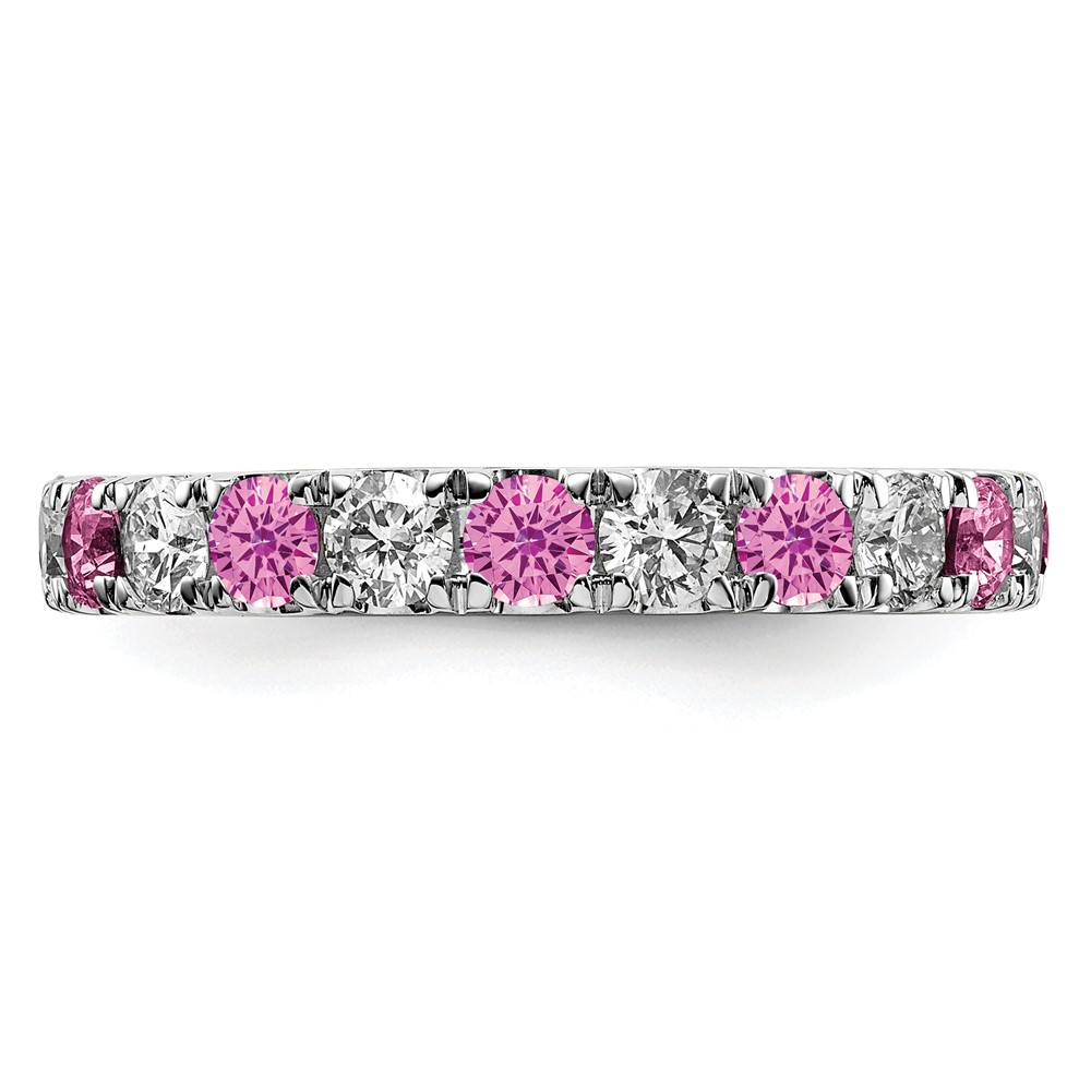 14k White Gold 1 carat Lab Grown Diamond VS/SI+ G+ and Lab Created Pink Sapphire Size 5 Eternity Band