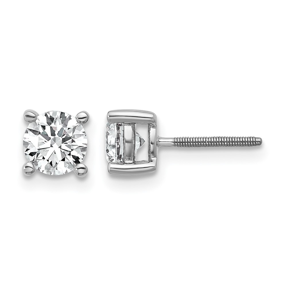 14k White Gold 1 carat Lab Grown Diamond VS/SI+ G+ Round Complete Four Prong Screwback Heavyweight Stud Earrings