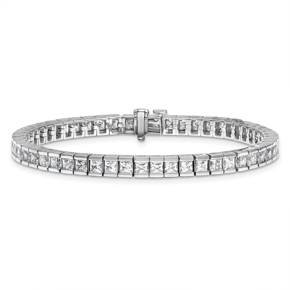 14k White Gold 10 carat Lab Grown Diamond VS/SI+ G+ Complete Princess Bezel Set Tennis Bracelet