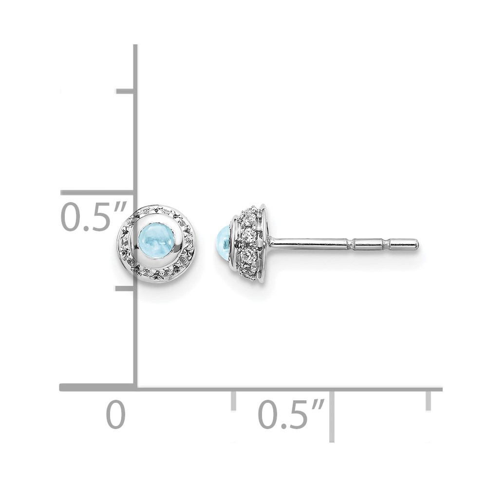 14k White Gold 2.5mm Round Aquamarine Cabochon and Diamond Halo Post Earrings