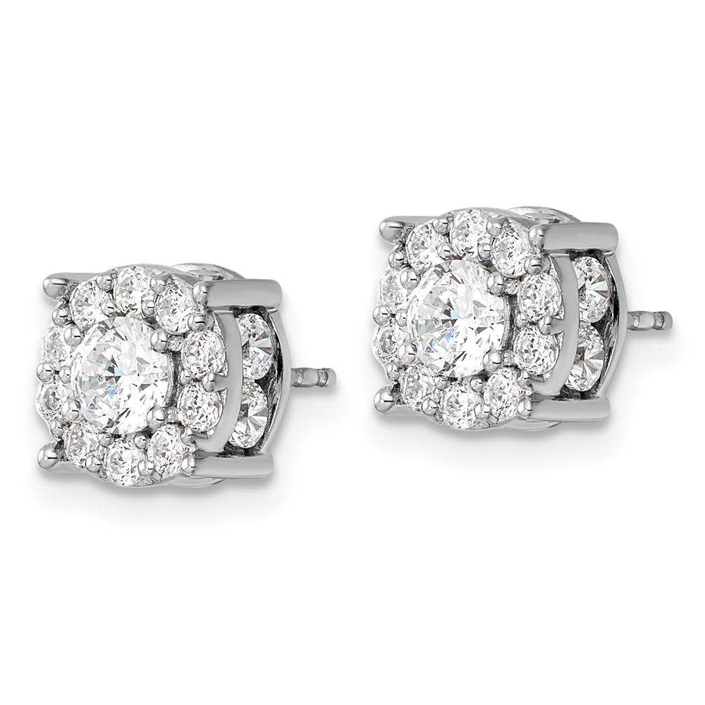14k White Gold 2 carat Lab Grown Diamond VS/SI+ G+ Complete Round Fashion Halo Post Earrings