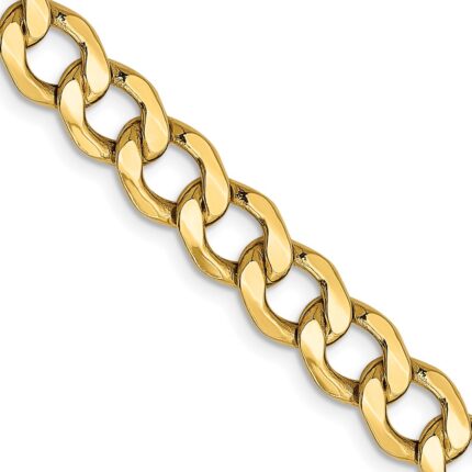 14K 7mm Semi-Solid Curb with Lobster Clasp Chain