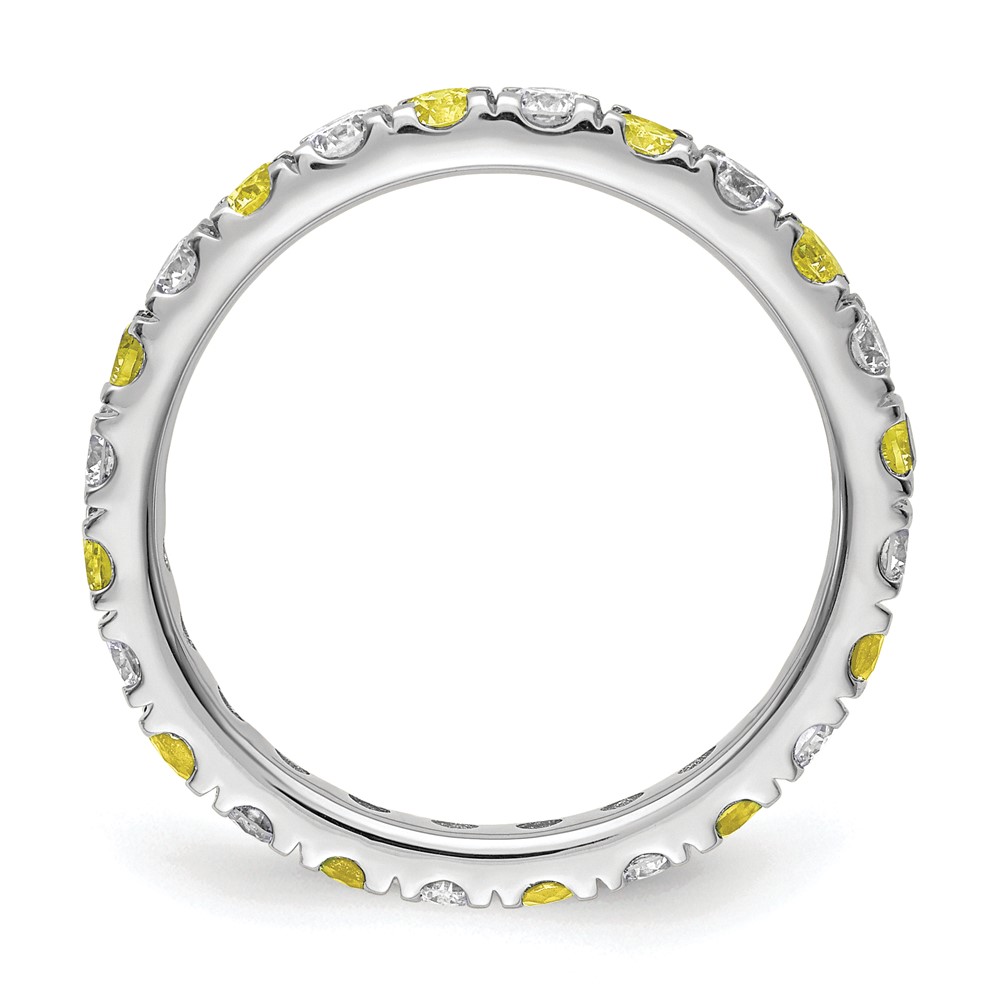 14k White Gold 1/2 carat Lab Grown Diamond VS/SI+ G+ and Lab Created Yellow Sapphire Size 6.5 Eternity Band