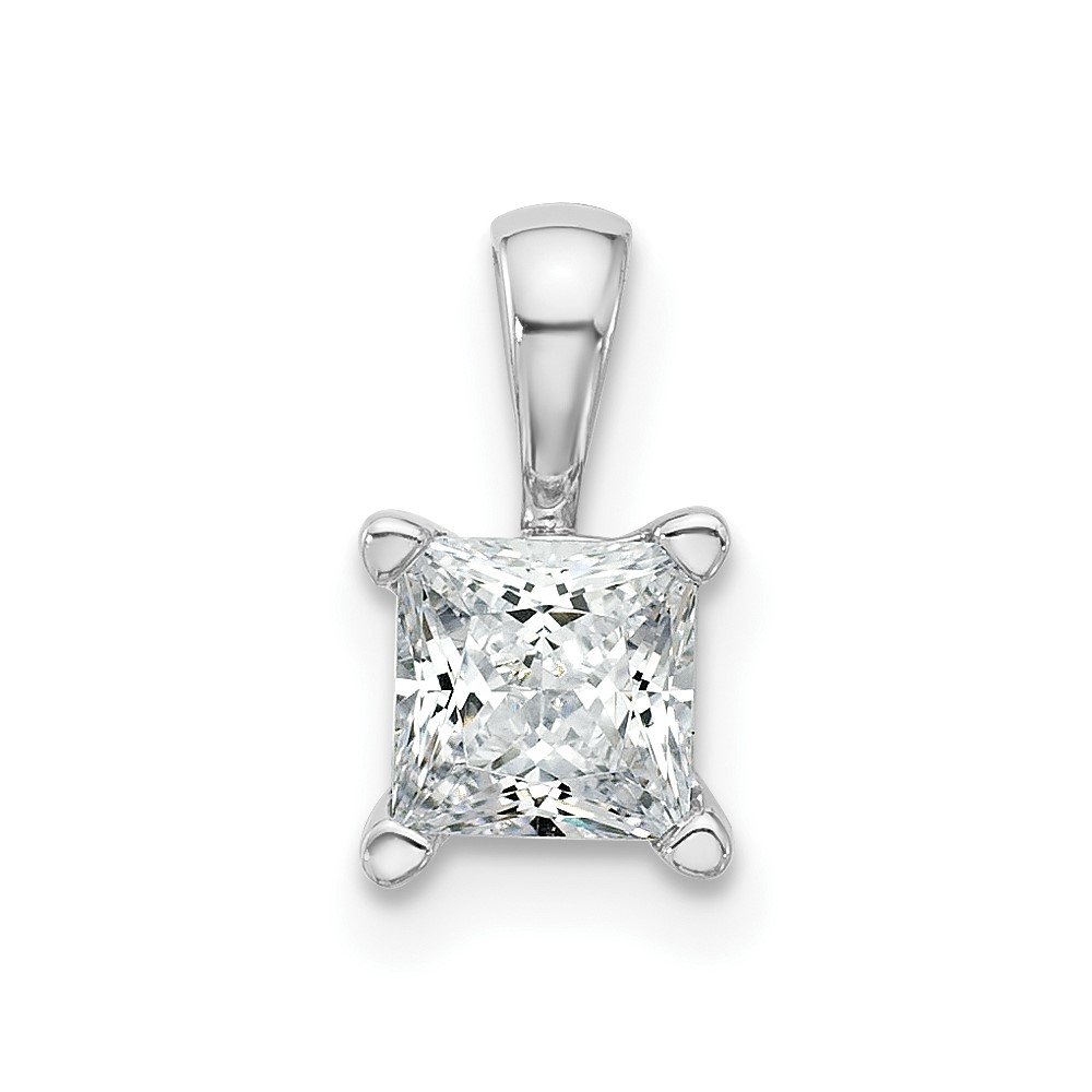 14k White Gold 3/4 carat Lab Grown Diamond VS/SI+ G+ Princess Complete Four Prong Pendant