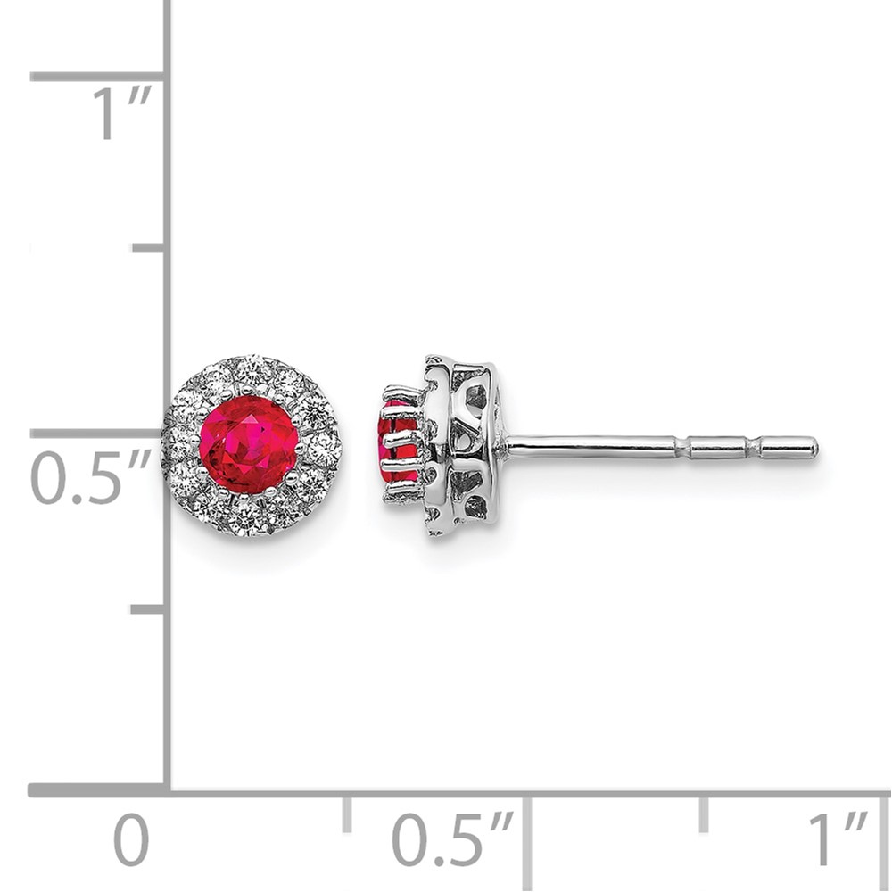 14k White Gold 3.5mm Round Blue Ruby and Diamond Halo Post Earrings