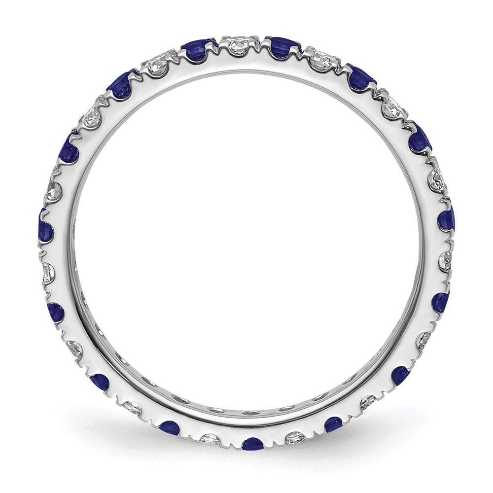 14k White Gold 3/8 carat Lab Grown Diamond VS/SI+ G+ and Lab Created Blue Sapphire Size 4.5 Eternity Band