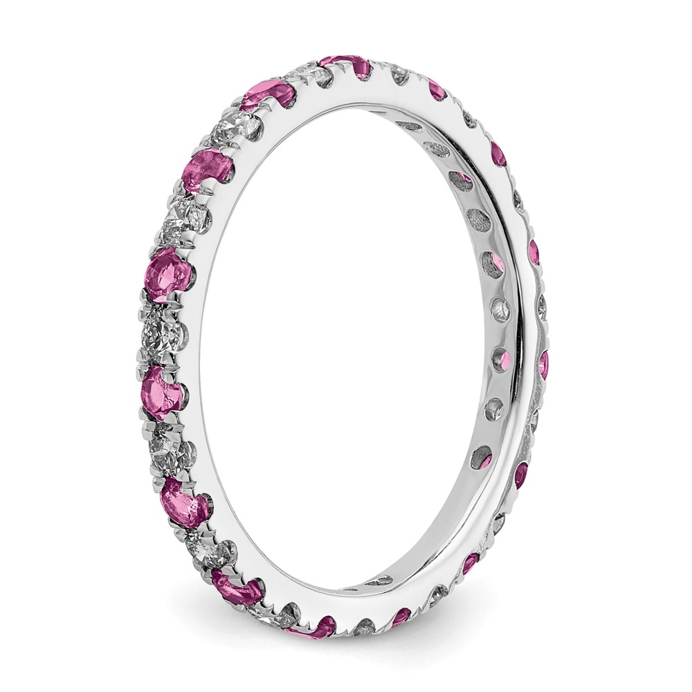 14k White Gold 3/8 carat Lab Grown Diamond VS/SI+ G+ and Lab Created Pink Sapphire Size 4.5 Eternity Band