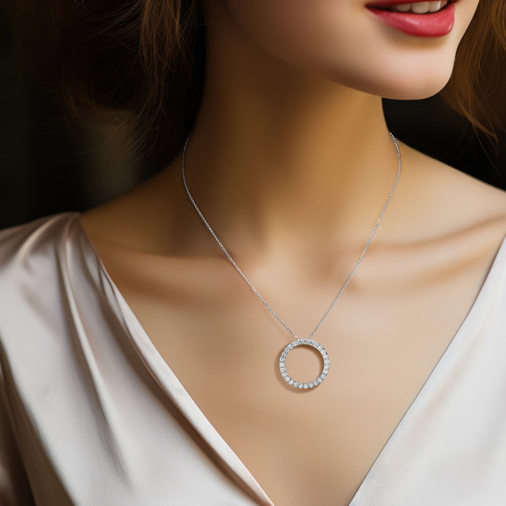 14k White Gold 1 1/2 carat Lab Grown Diamond VS+ F+ Complete Circle Chain Slide Pendant