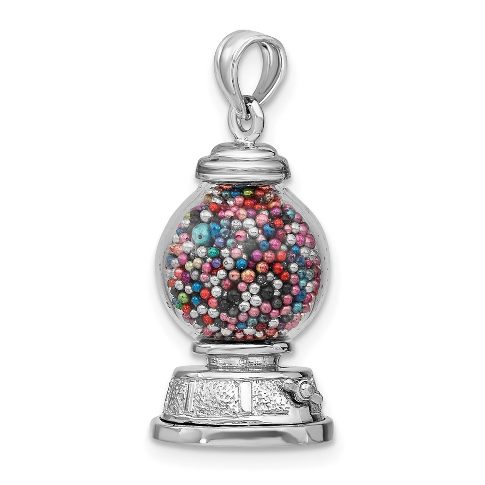 14K White Gold 3-D Glass Gumball Machine with Moveable Multi-colored Beads Pendant