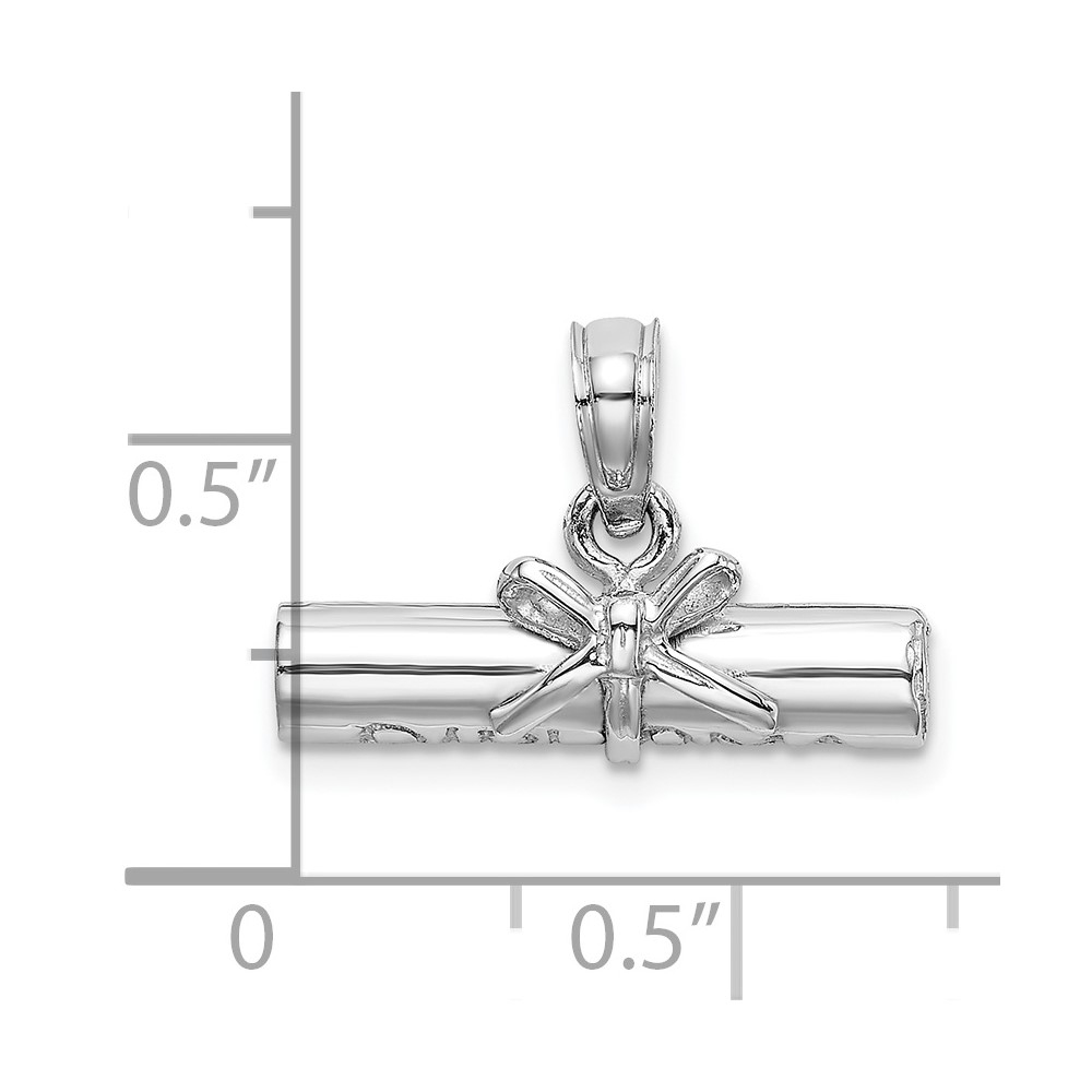 14K White Gold 3-D Hollow Polished DIPLOMA Pendant