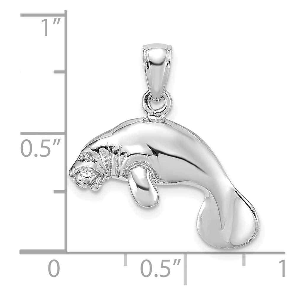 14K White Gold 3-D Polished Swimming Manatee Charm