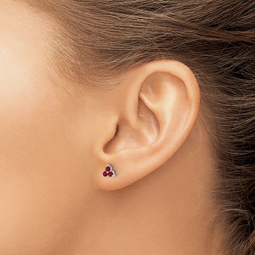 14k White Gold 3-stone Lab Created Ruby Triangle Post Earrings