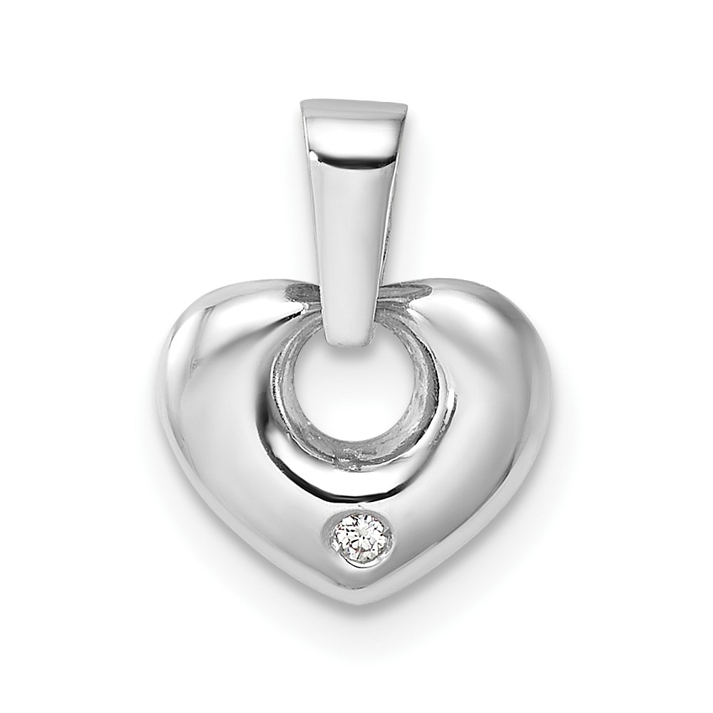 14k White Gold 3D CZ Heart Pendant