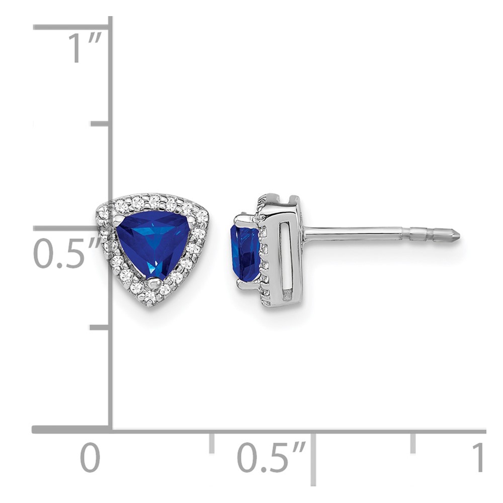 14k White Gold 4.5mm Trillion Sapphire and Diamond Halo Post Earrings