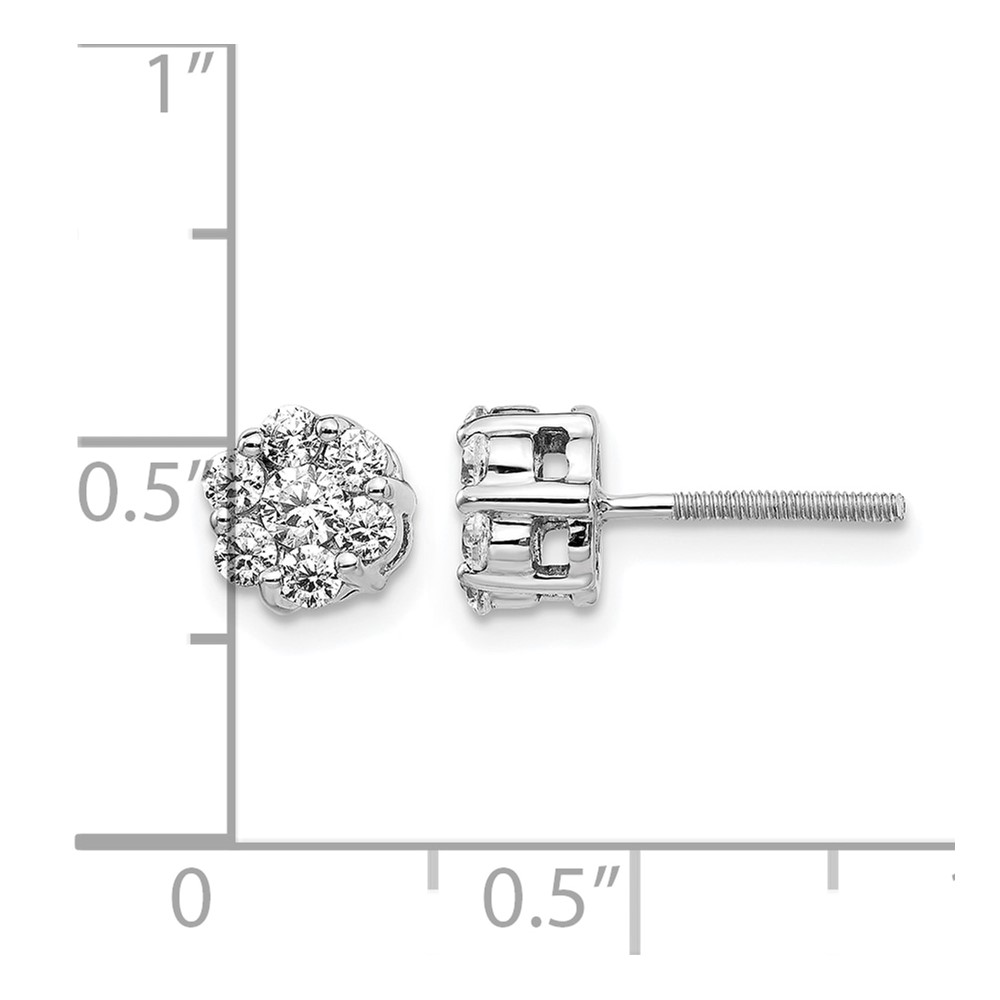 14k White Gold 5/8 carat Diamond Cluster Screwback Post Earrings