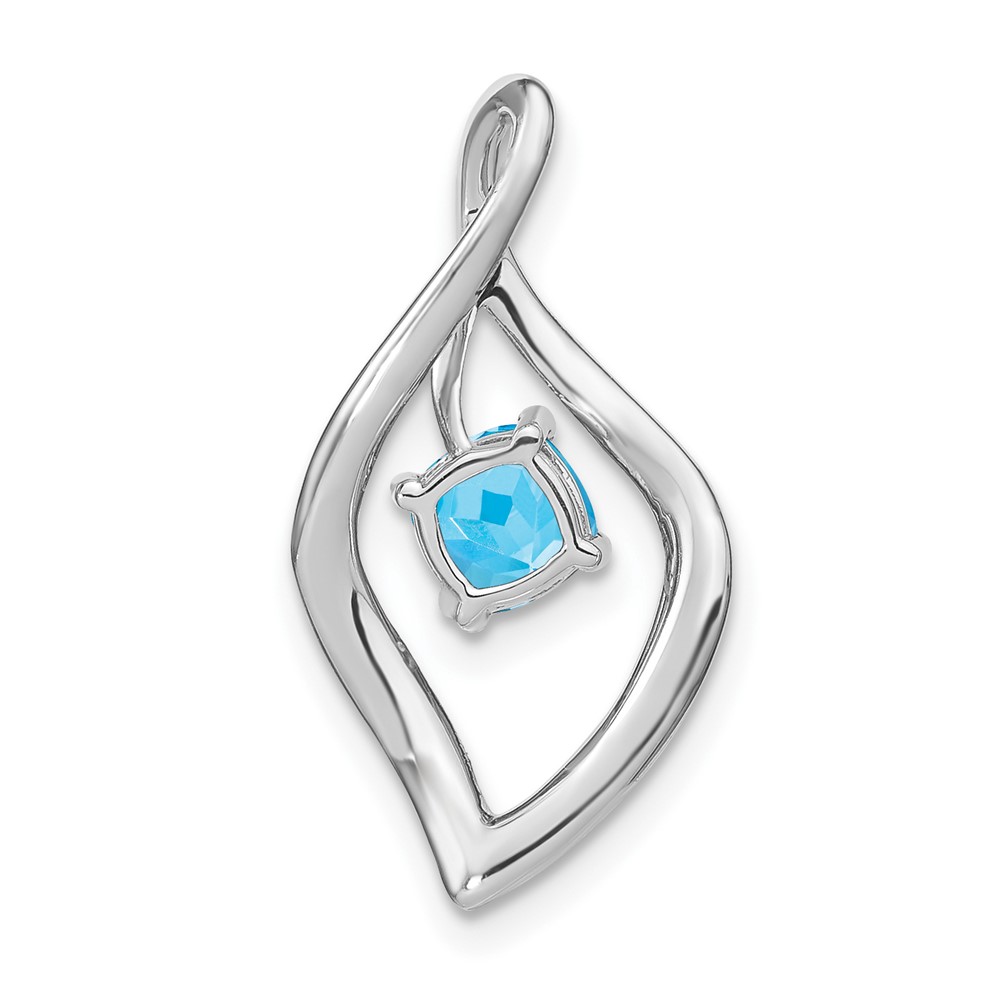 14k White Gold 5mm Cushion Blue Topaz and Diamond Leaf Chain Slide