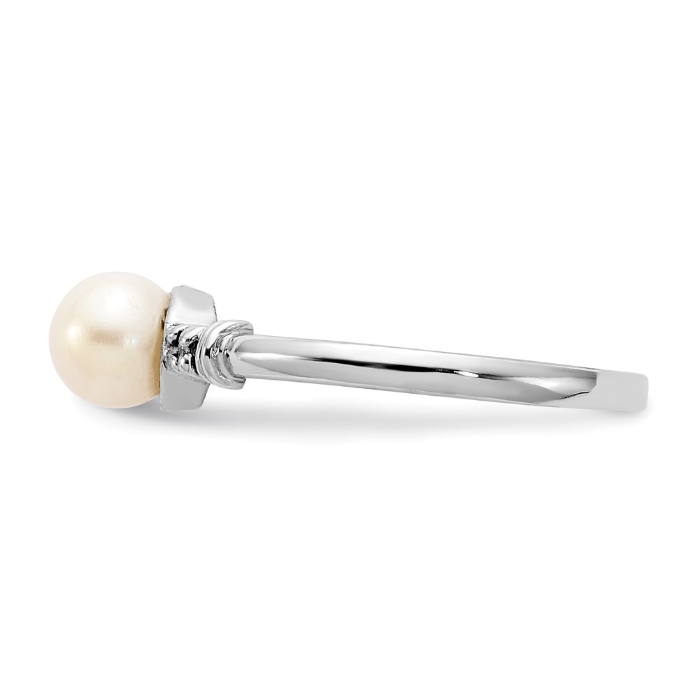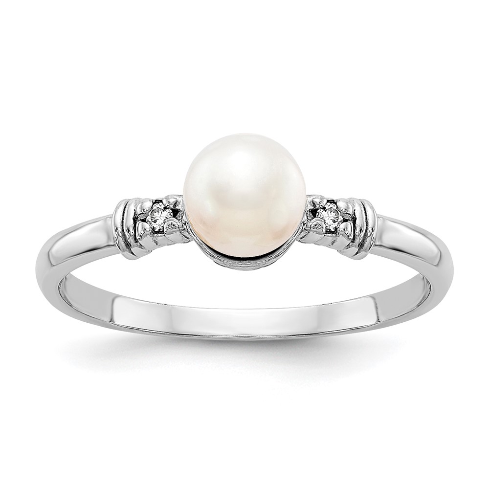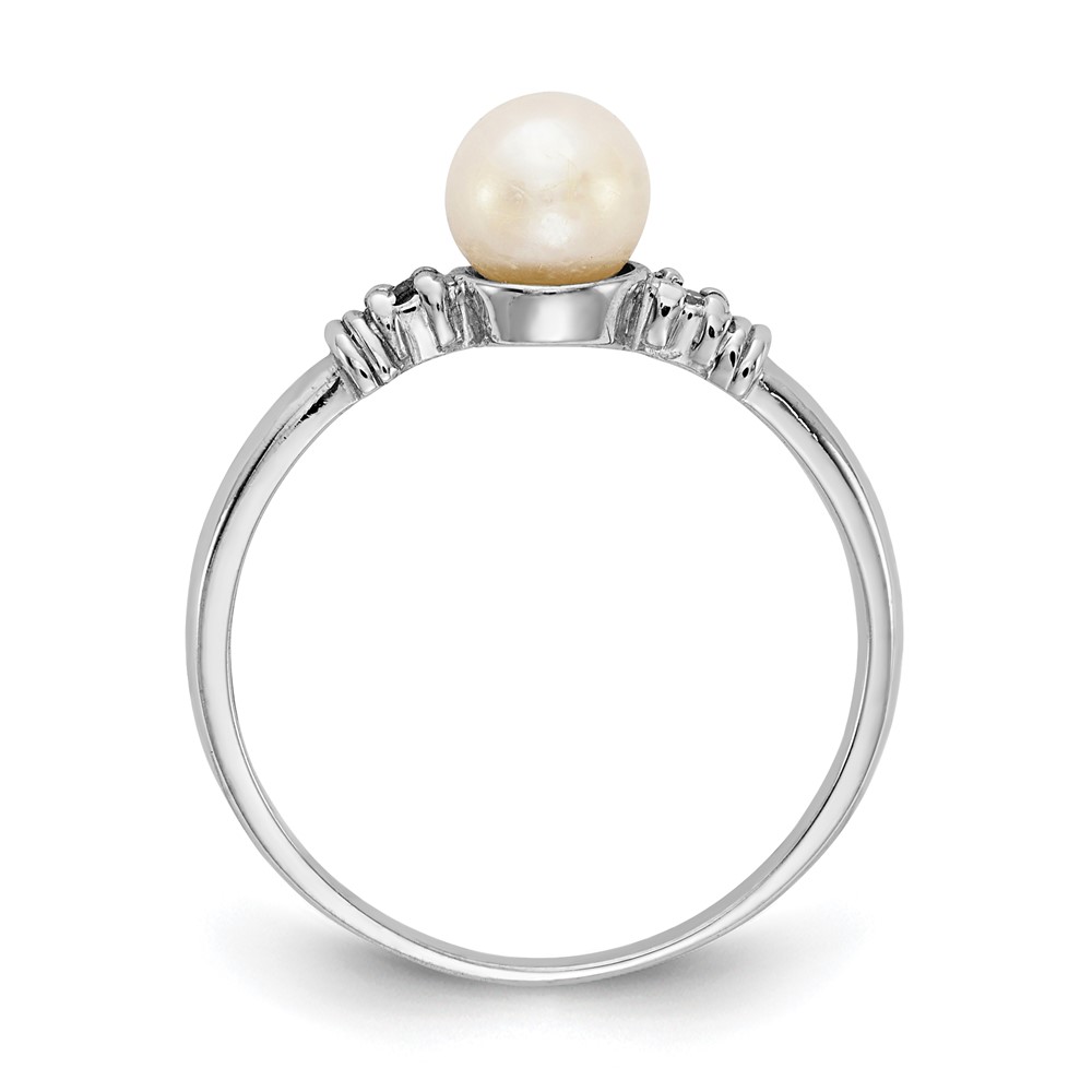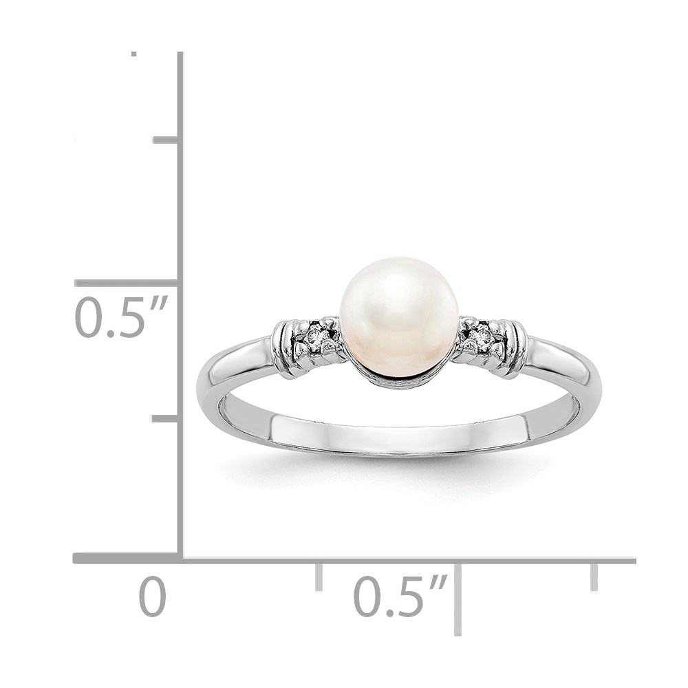 14k White Gold 5mm FW Cultured Pearl AA Diamond ring