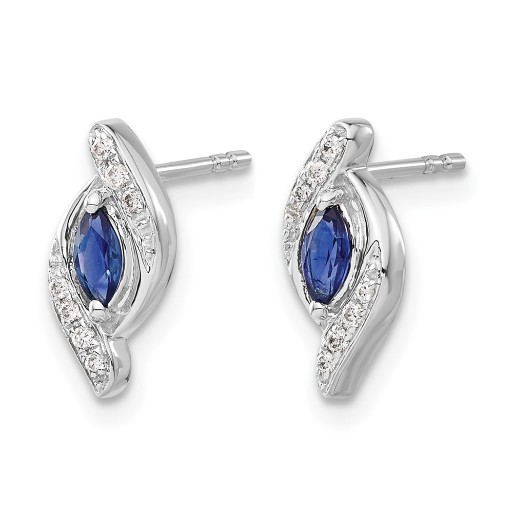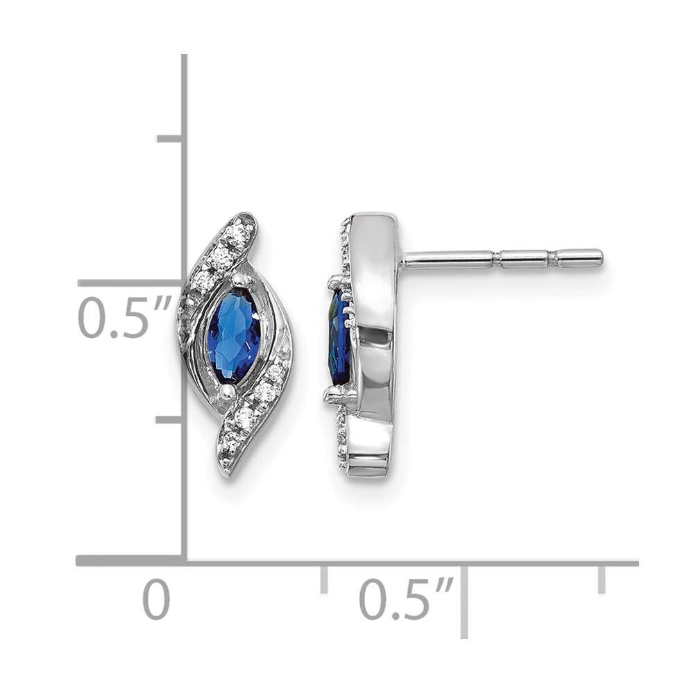 14k White Gold 5×2.5mm Marquise Sapphire and Diamond Post Earrings