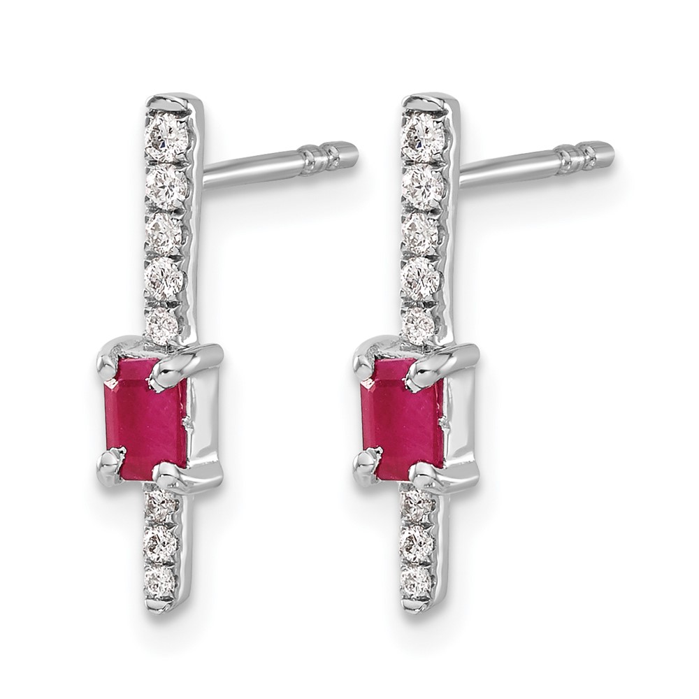 14k White Gold 5x3mm Emerald-cut Ruby and Diamond Post Earrings