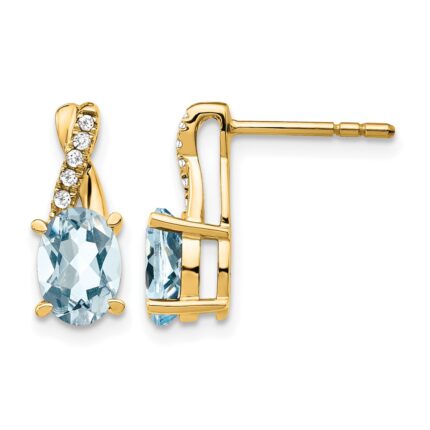 14k 7mm Cushion Checkerboard March/Aquamarine and Diamond Post Earrings