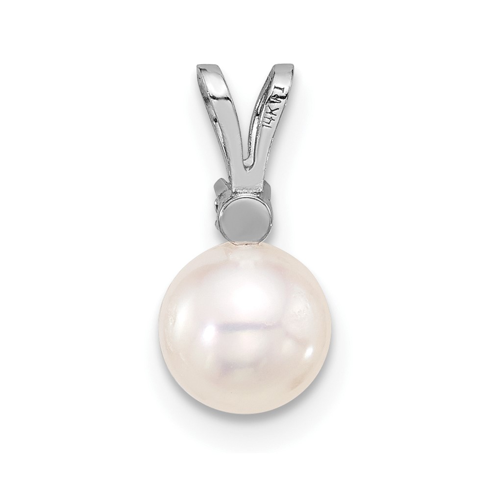 14k White Gold 6-7mm White Round Akoya Saltwater Pearl and .03 Carat Diamond Pendant