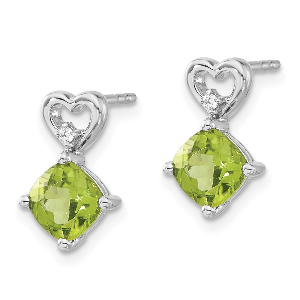 14k White Gold 6mm Cushion August/Peridot and Diamond Heart Post Earrings