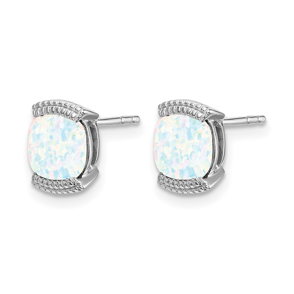 14k White Gold 6mm Cushion Lab Created Opal Post Earrings