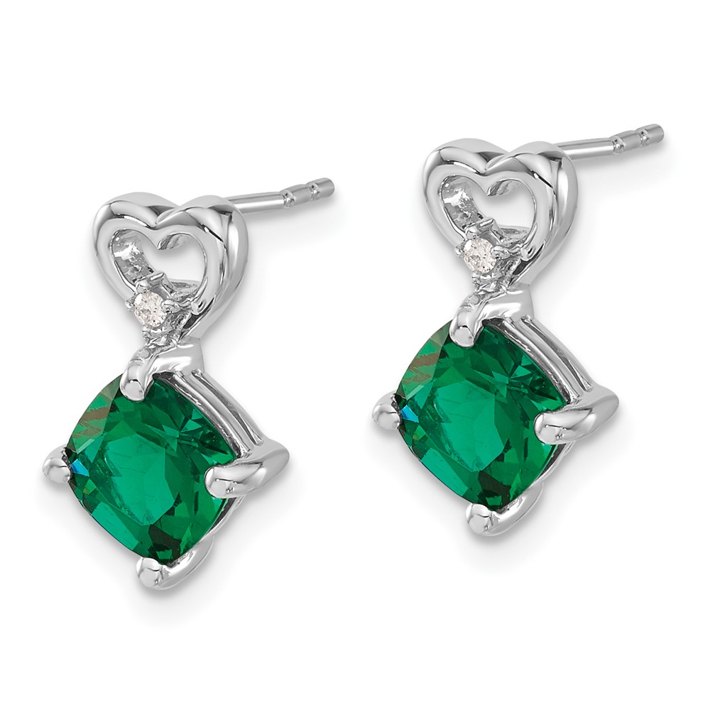 14k White Gold 6mm Cushion May/Lab Created Emerald and Diamond Heart Post Earrings