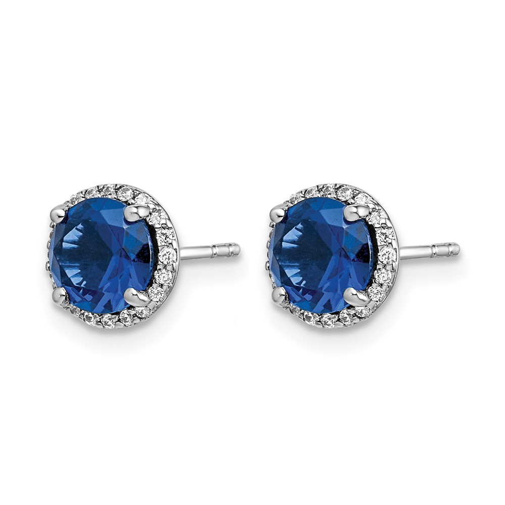 14k White Gold 6mm Round Sapphire and Diamond Halo Post Earrings