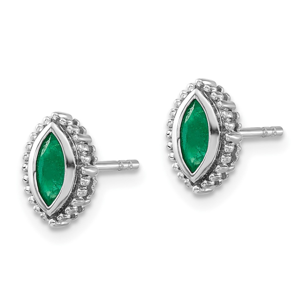14k White Gold 6x3mm Marquise Emerald Post Earrings