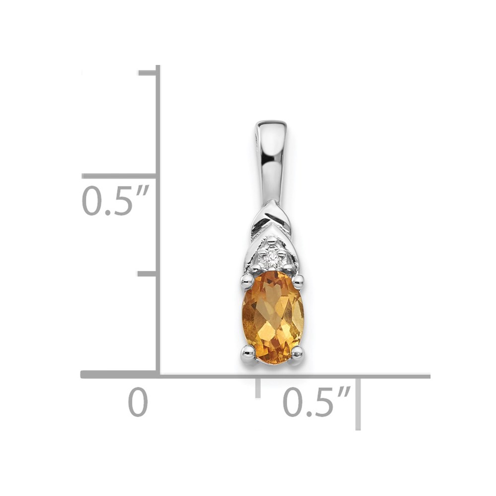 14k White Gold 6×4 Oval November/Citrine and Diamond Pendant