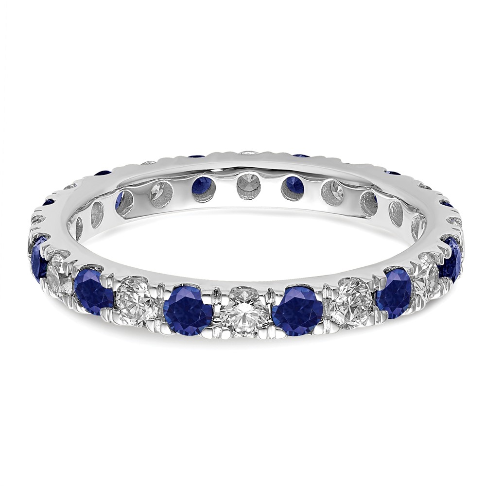 14k White Gold 7/8 carat Lab Grown Diamond VS/SI+ G+ and Lab Created Blue Sapphire Size 8.5 Eternity Band