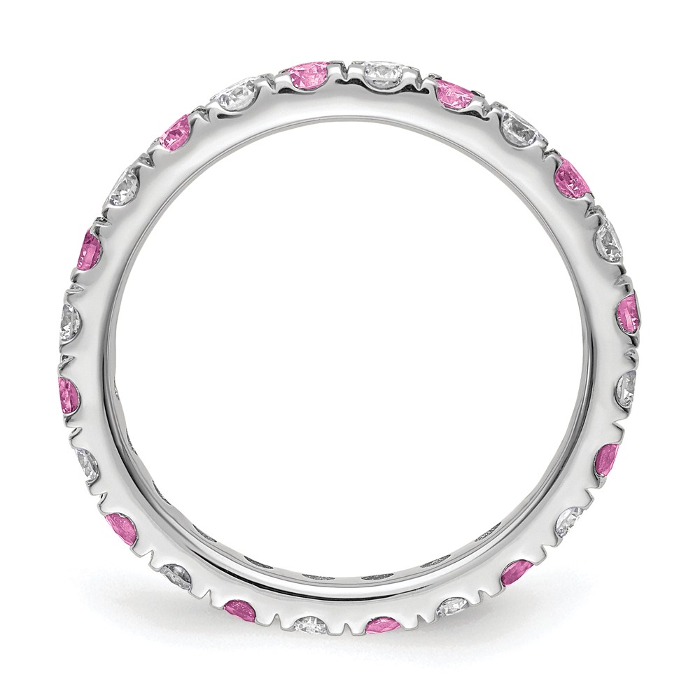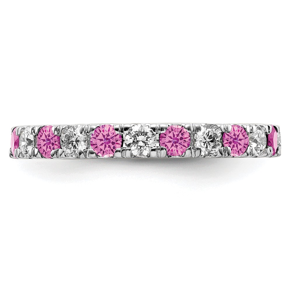 14k White Gold 7/8 carat Lab Grown Diamond VS/SI+ G+ and Lab Created Pink Sapphire Comp Eternity Bandd