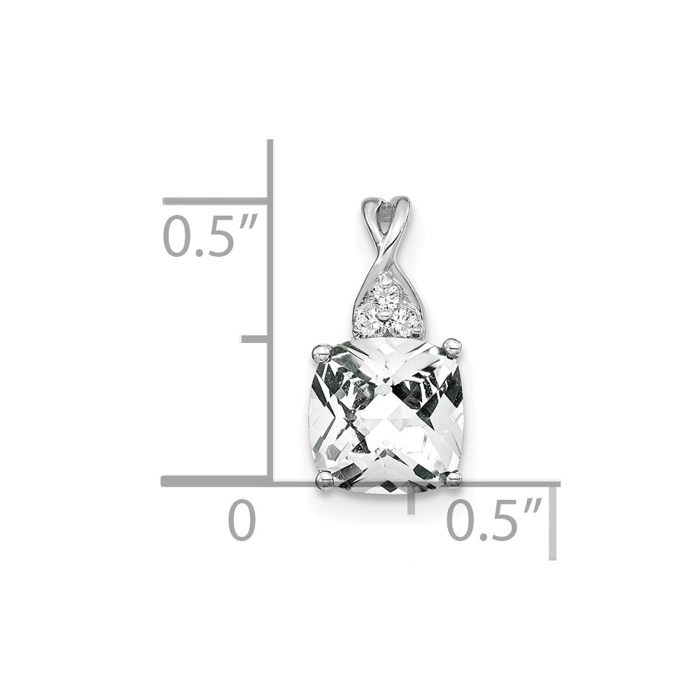 14k White Gold 7mm Cushion Checkerboard April/White Topaz and Diamond Pendant