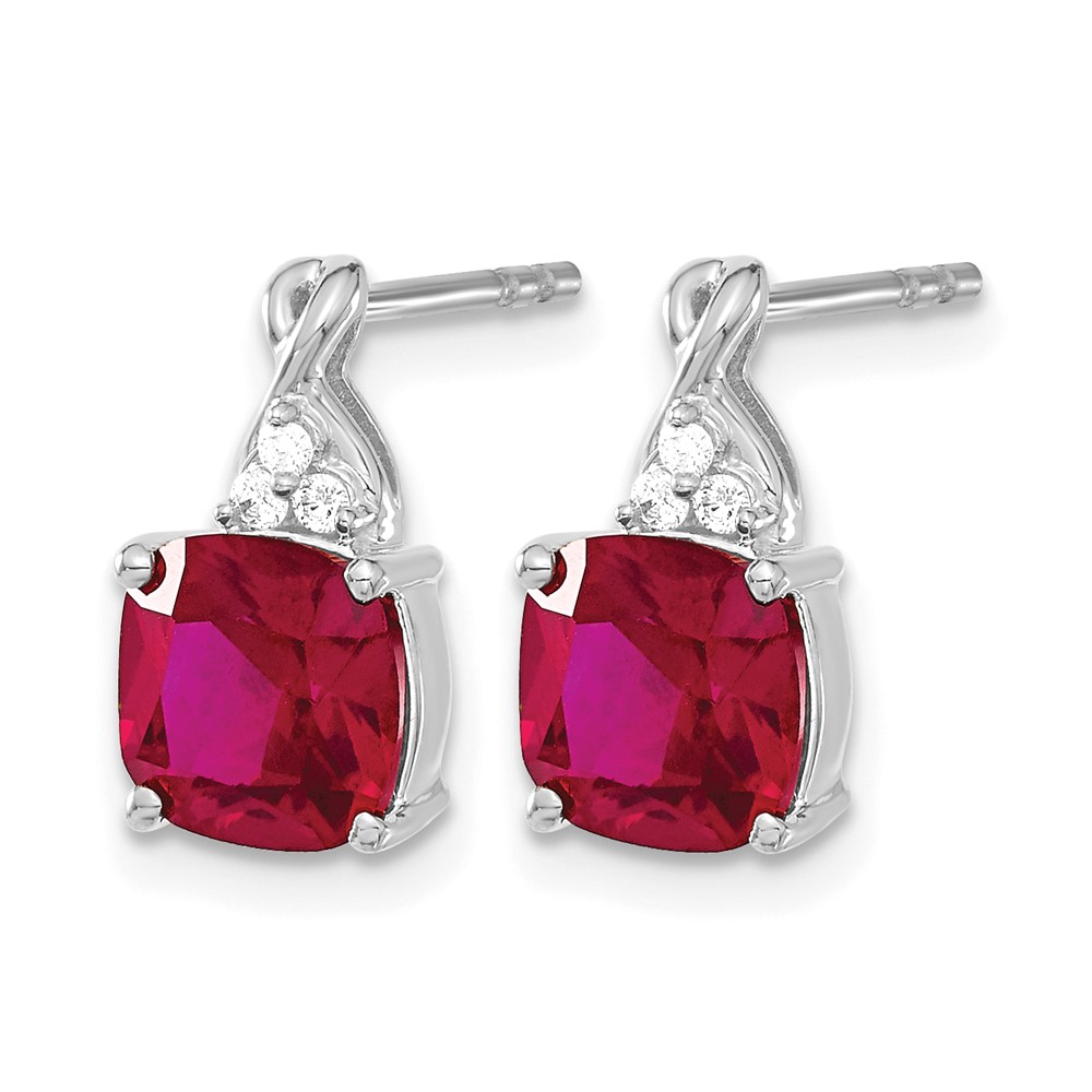14k White Gold 7mm Cushion Checkerboard July/Lab Created Ruby and Diamond Post Earrings