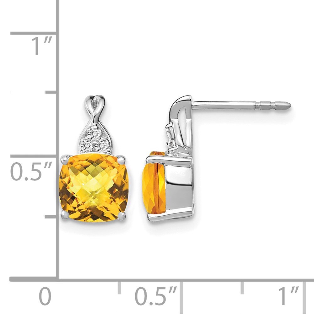 14k White Gold 7mm Cushion Checkerboard November/Citrine and Diamond Post Earrings