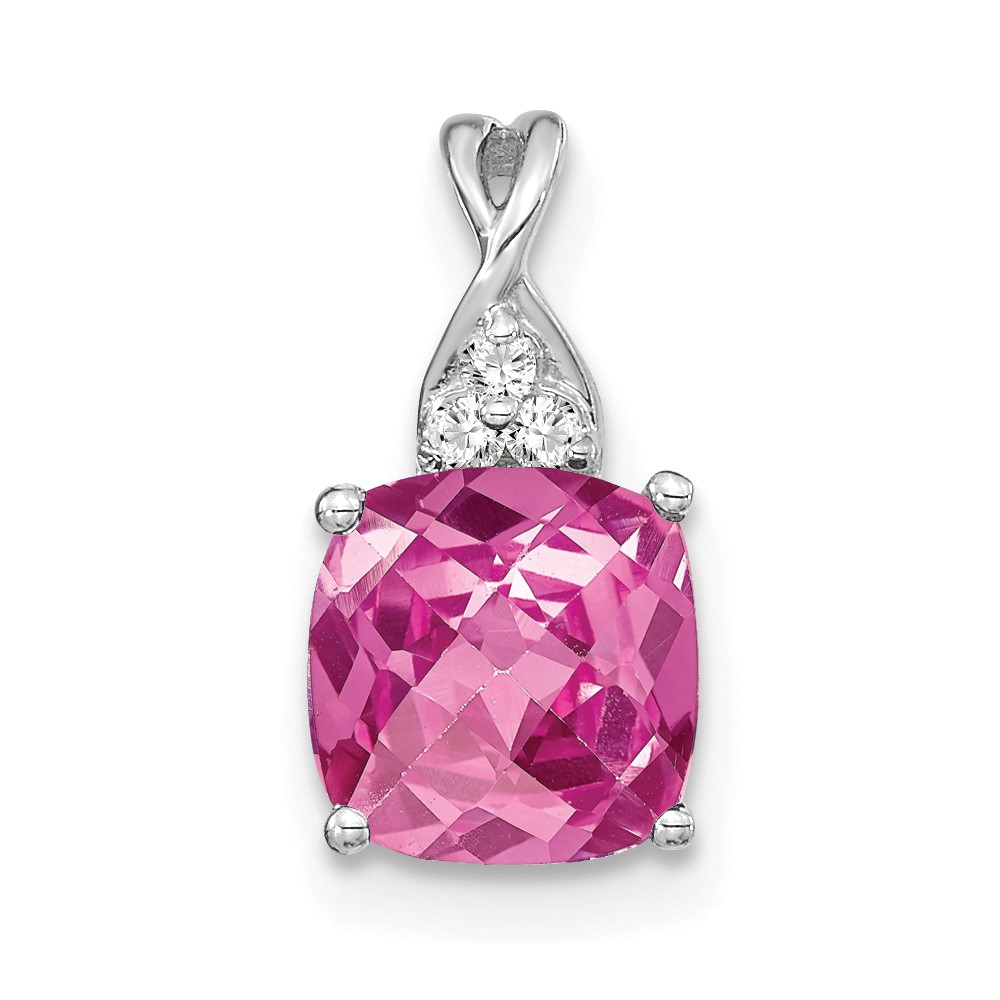 14k White Gold 7mm Cushion Checkerboard October/Lab Created Pink Sapphire and Diamond Pendant