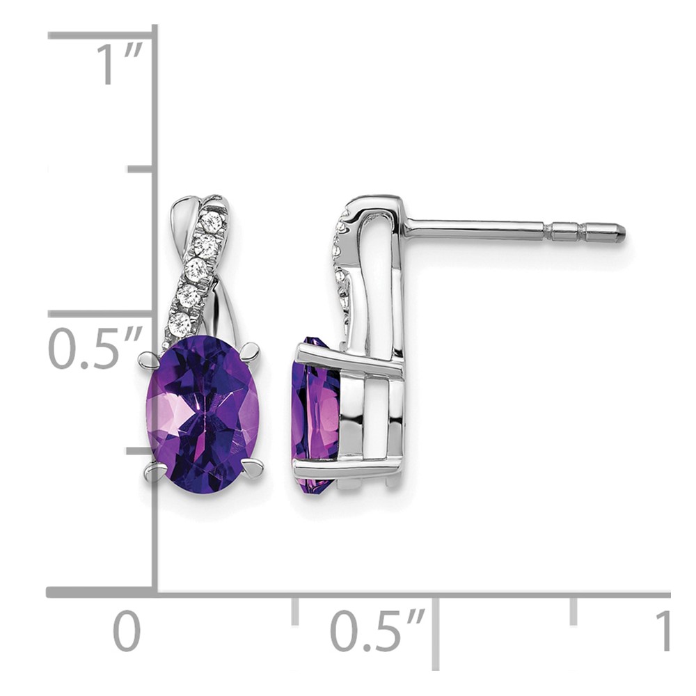 14k White Gold 7×5 Oval February/Amethyst and Diamond Earrings