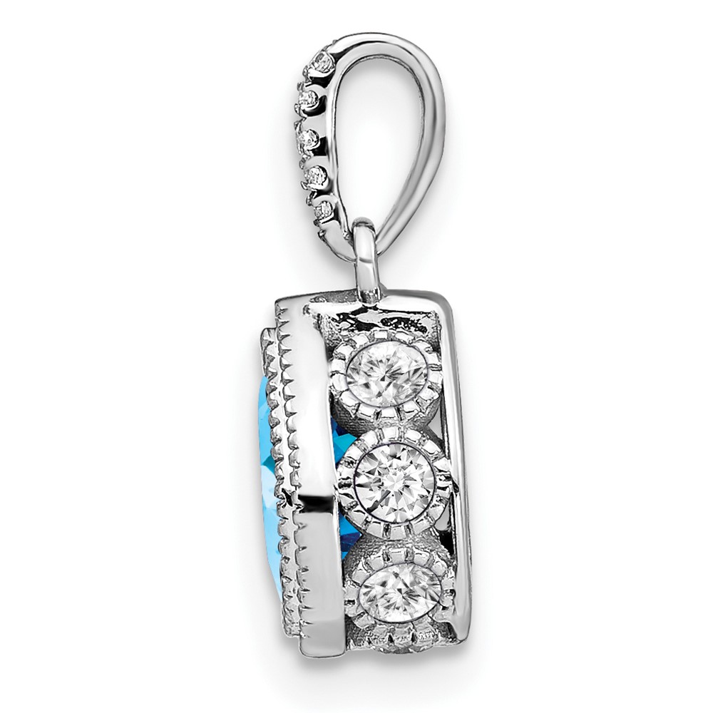 14k White Gold 7x5mm Pear Blue Topaz and Diamond Pendant