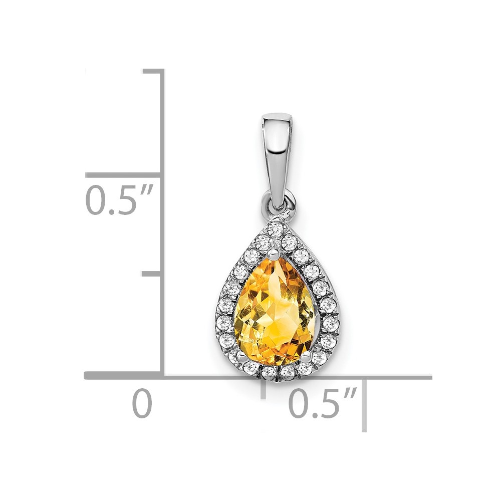 14k White Gold 7x5mm Pear Citrine and Diamond Halo Pendant