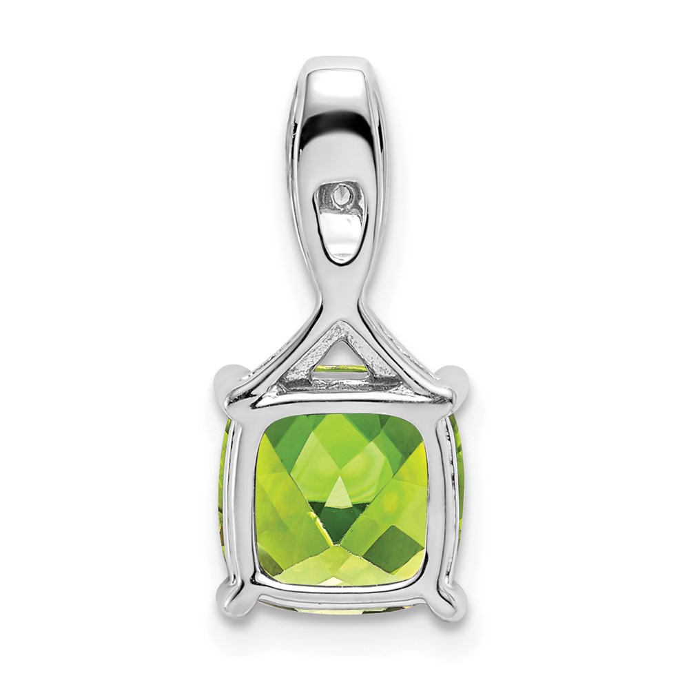 14k White Gold 8mm Cushion Peridot and Diamond Chain Slide