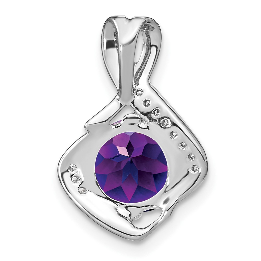 14k White Gold 8mm Round Amethyst and Diamond Fancy Chain Slide