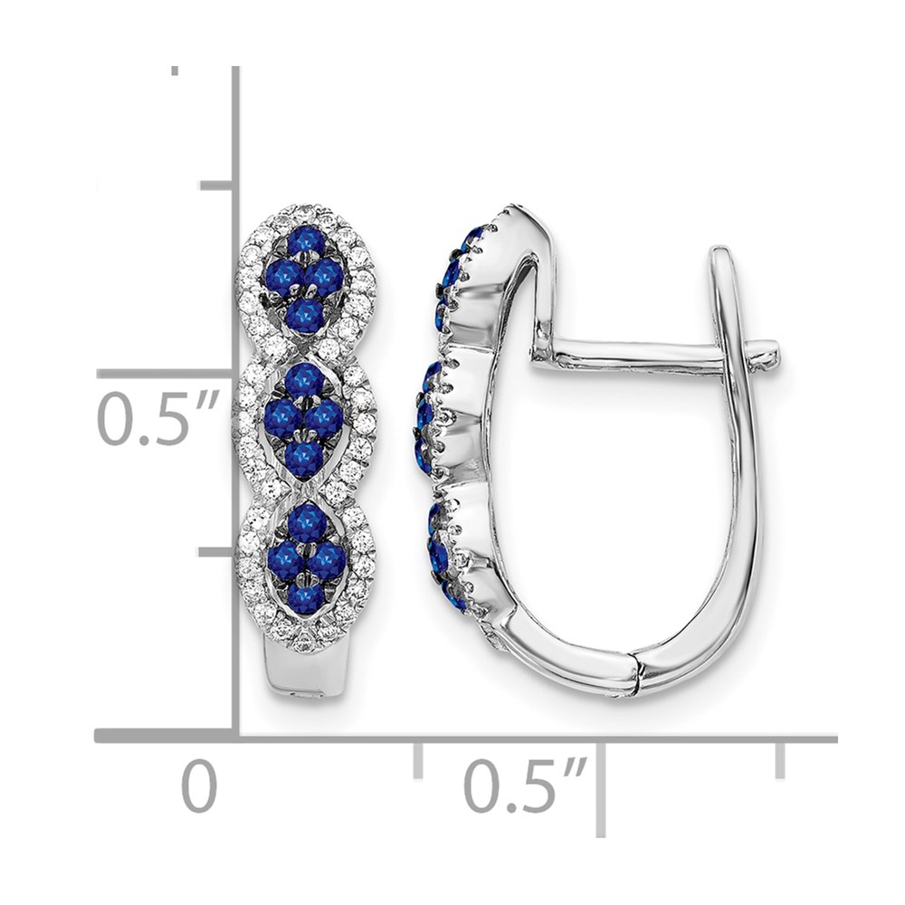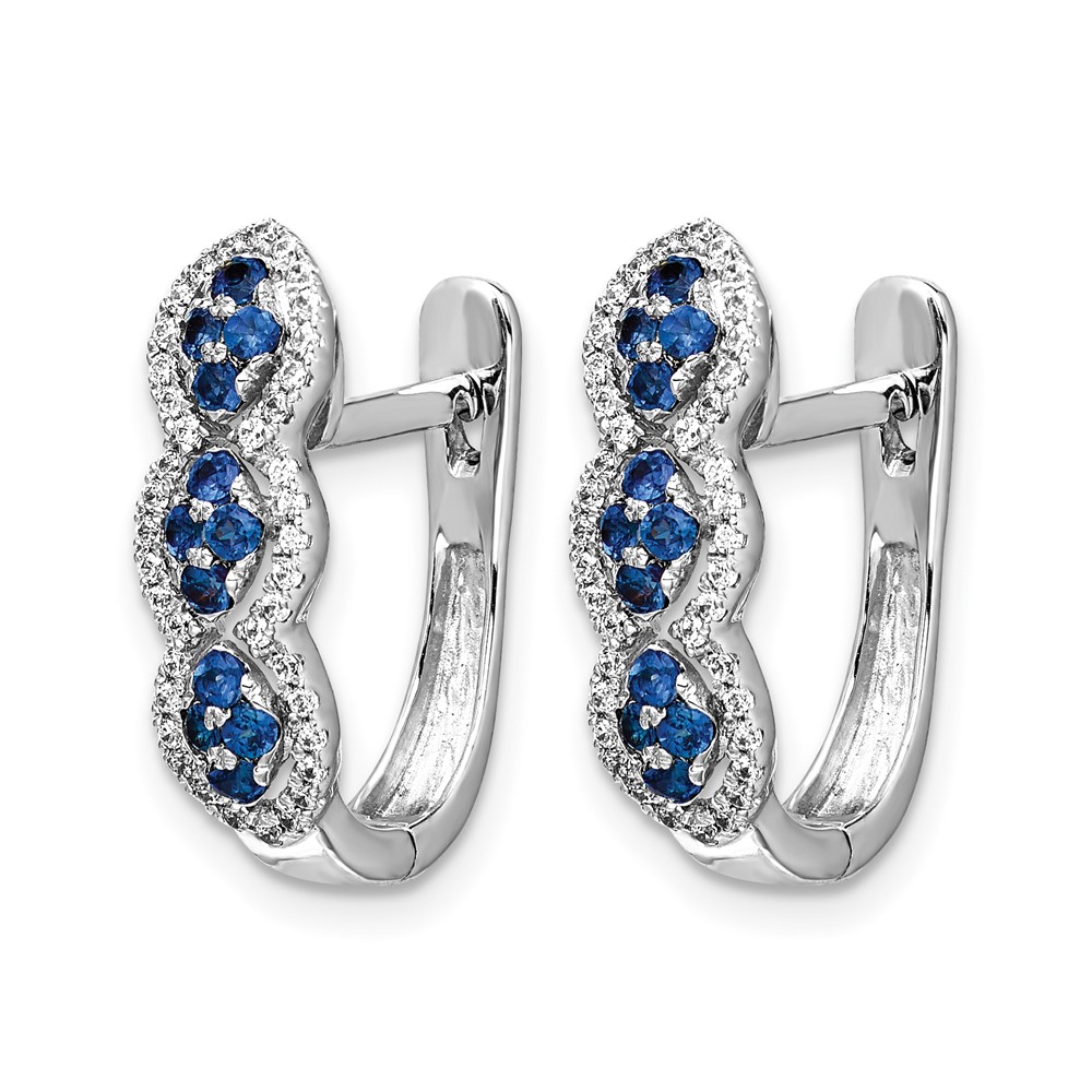 14k White Gold Blue Sapphire Cluster and Diamond Hinged Hoop Earrings