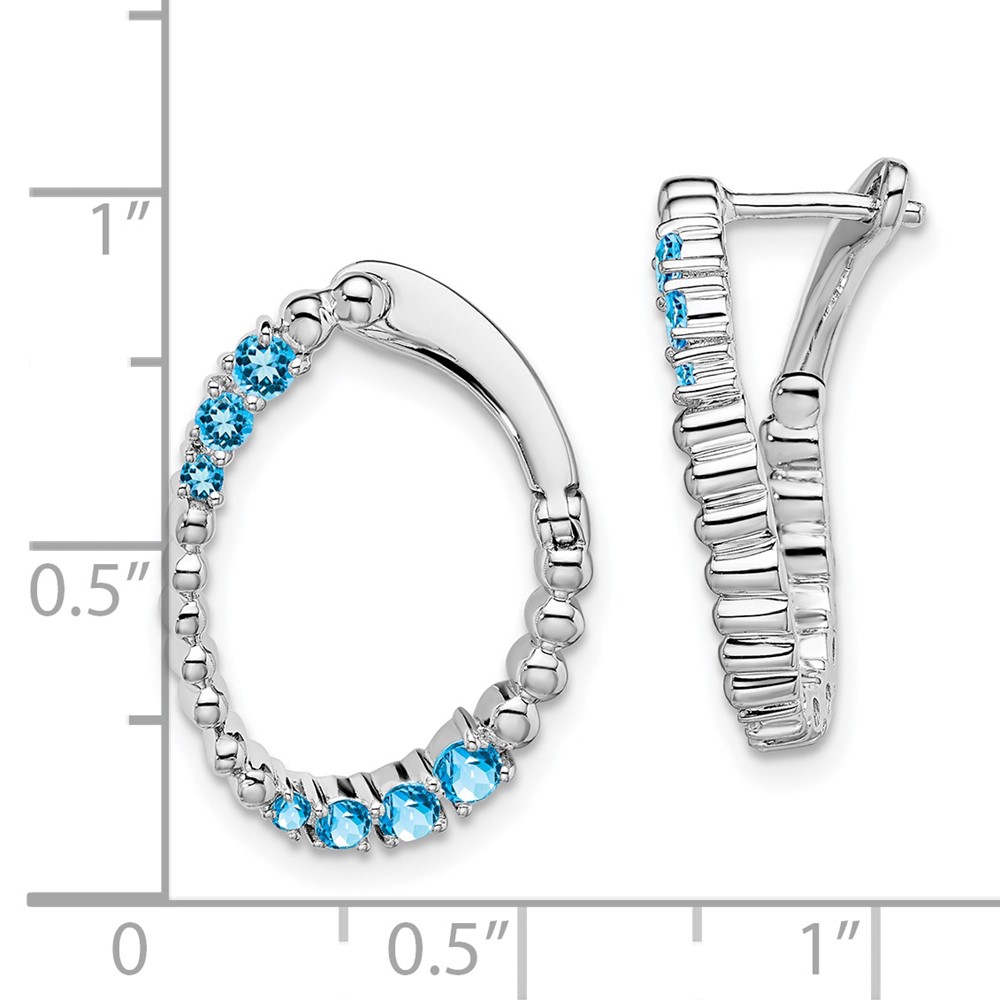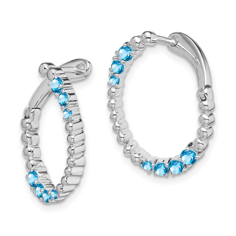 14k White Gold Blue Topaz Oval Hoop Earrings
