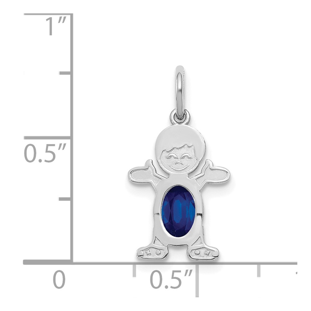 14K White Gold Boy Charm 6×4 Oval Genuine Sapphire-September