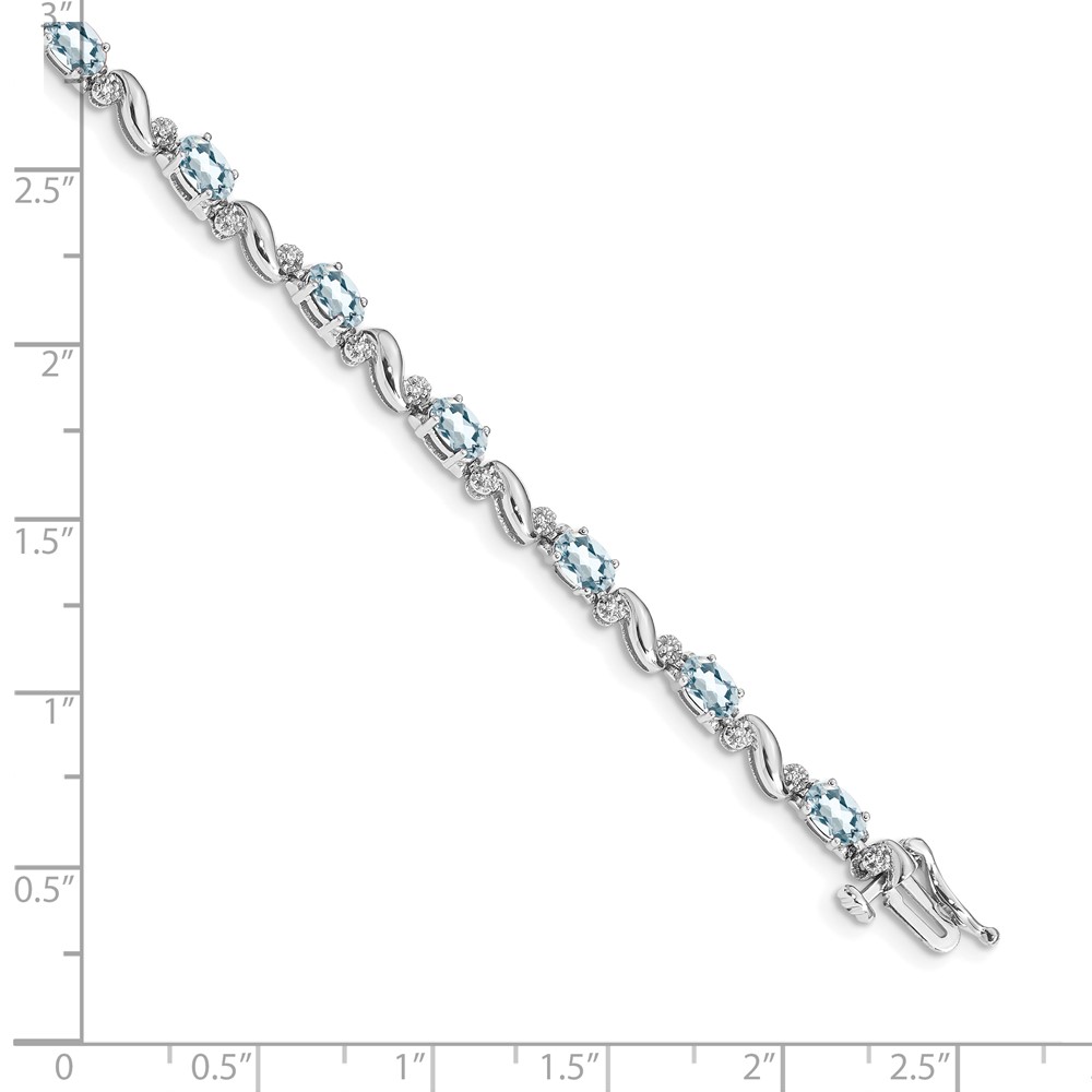 14k White Gold Complete Diamond and Oval Aquamarine Curved Link 7 inch Bracelet