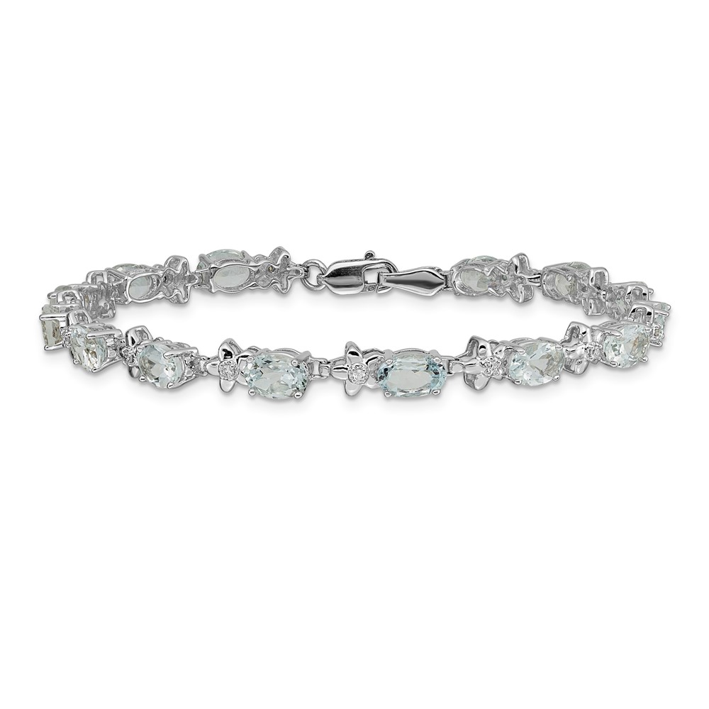 14k White Gold Complete Diamond and Oval Aquamarine Floral 7 inch Bracelet