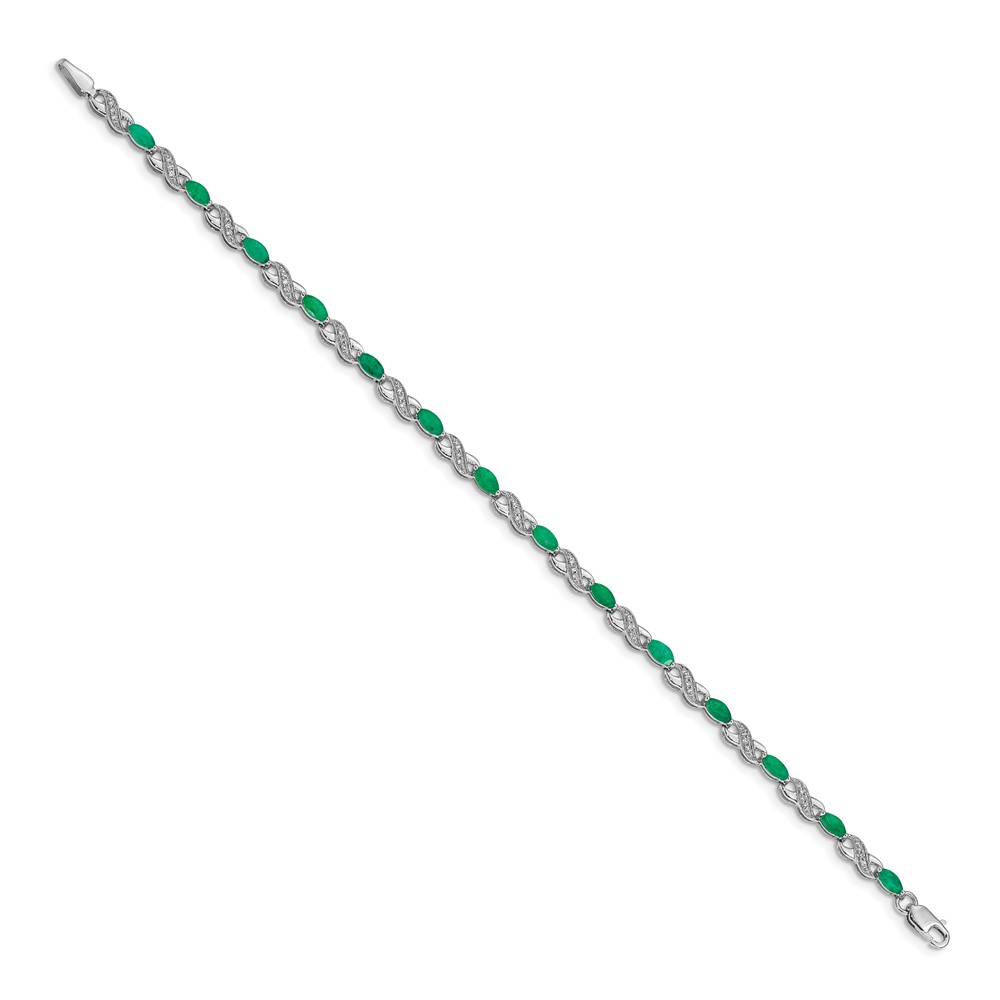 14k White Gold Complete Diamond and Oval Emerald Infinity Link 7.25 inch Bracelet