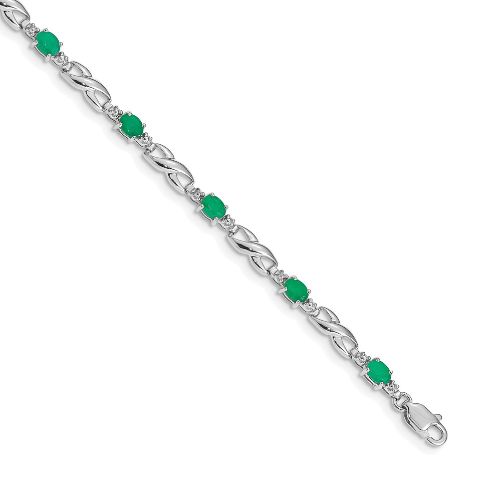 14k Complete Diamond and Oval Emerald Infinity Link 7.25 inch Bracelet